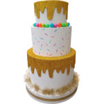 Bolo gigante em madeira pintada.
