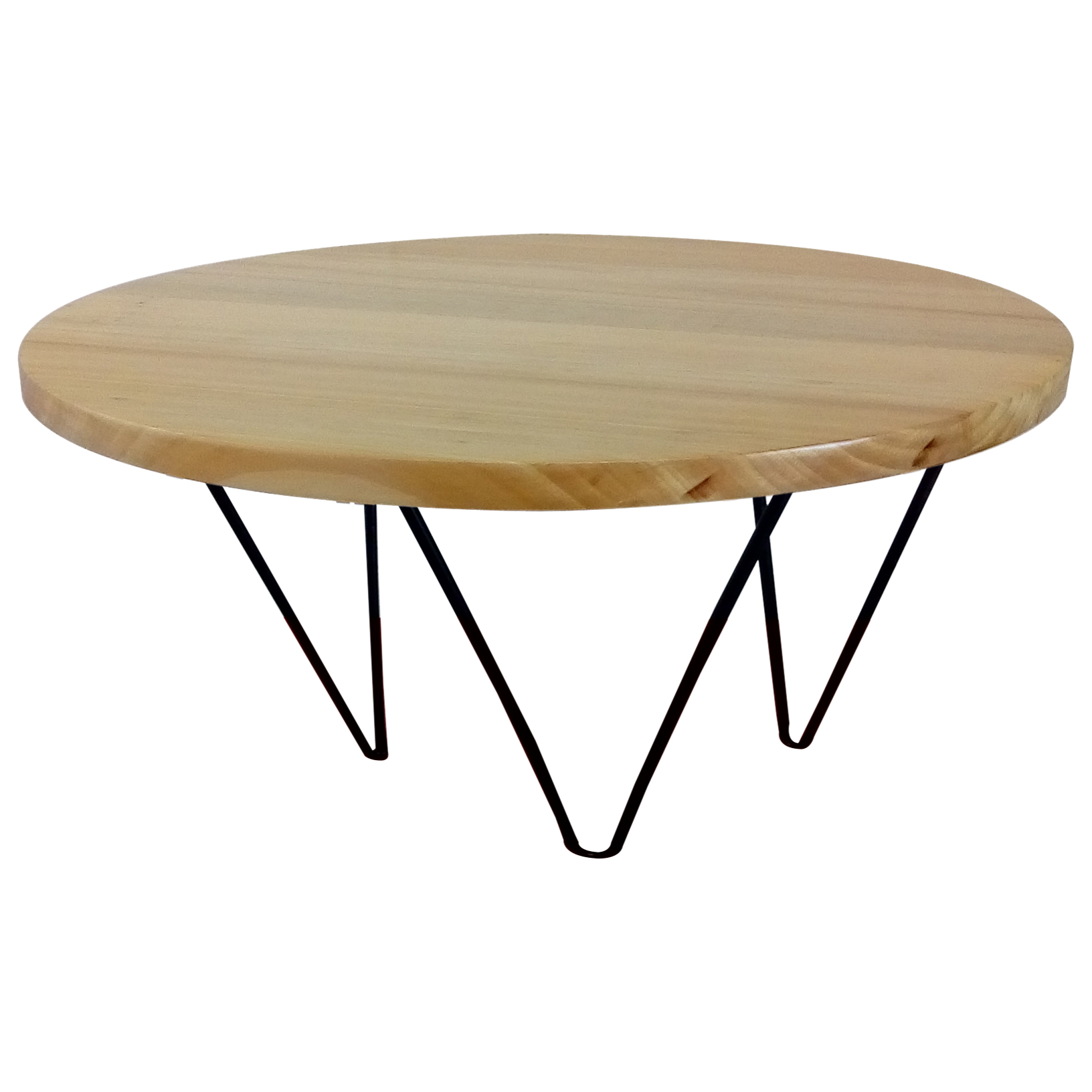 – Tampo em madeira maciça e pés em ferro pintado de preto.