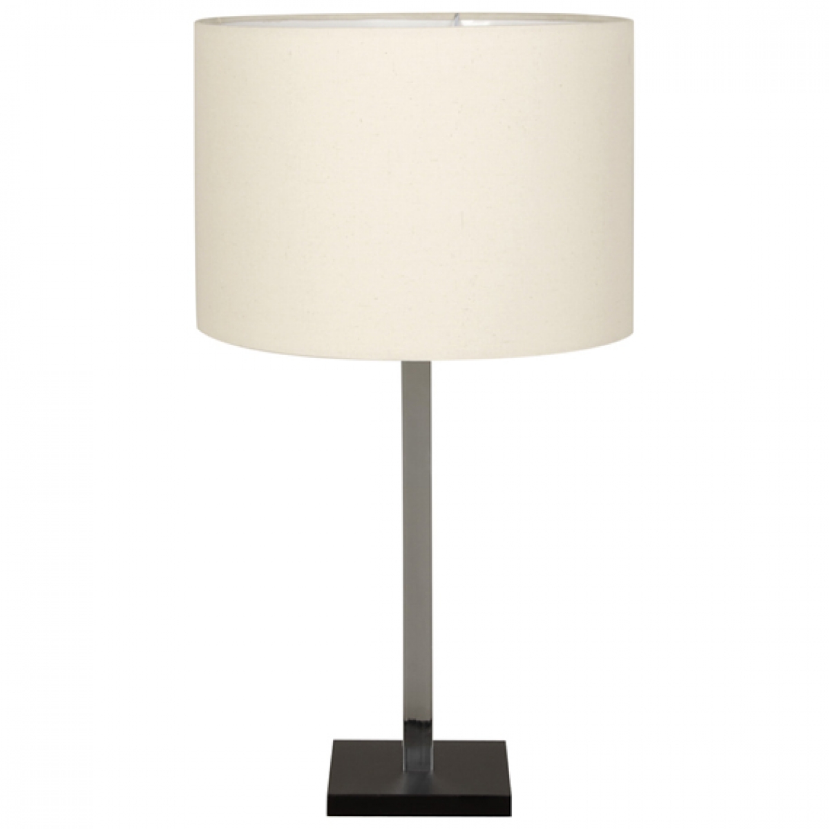 Luminária Luciana – Base de luminária de mesa, em MDF tingido com acabamento em verniz poliuretano e haste em tubo de alumínio polido, cúpula em tecido bege.