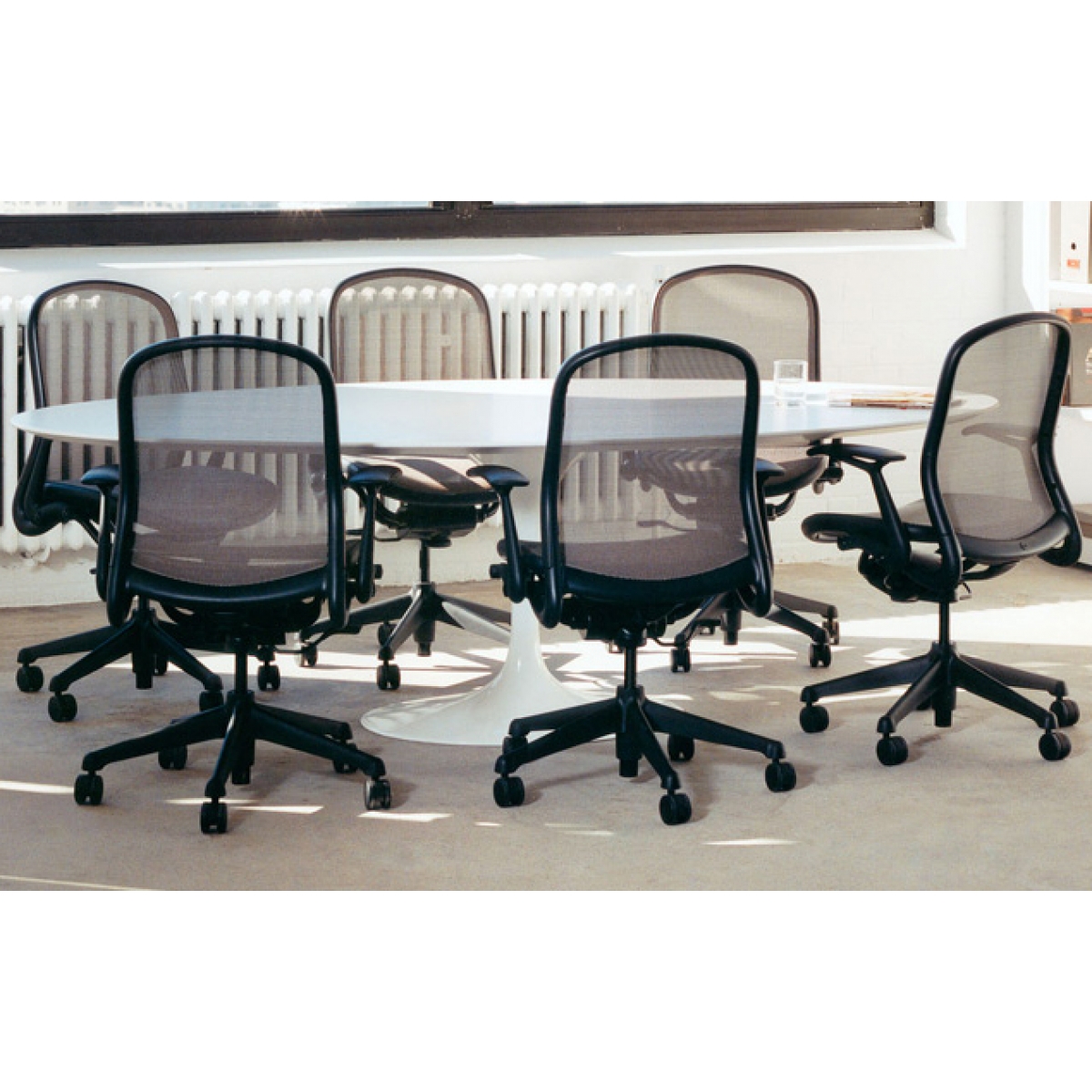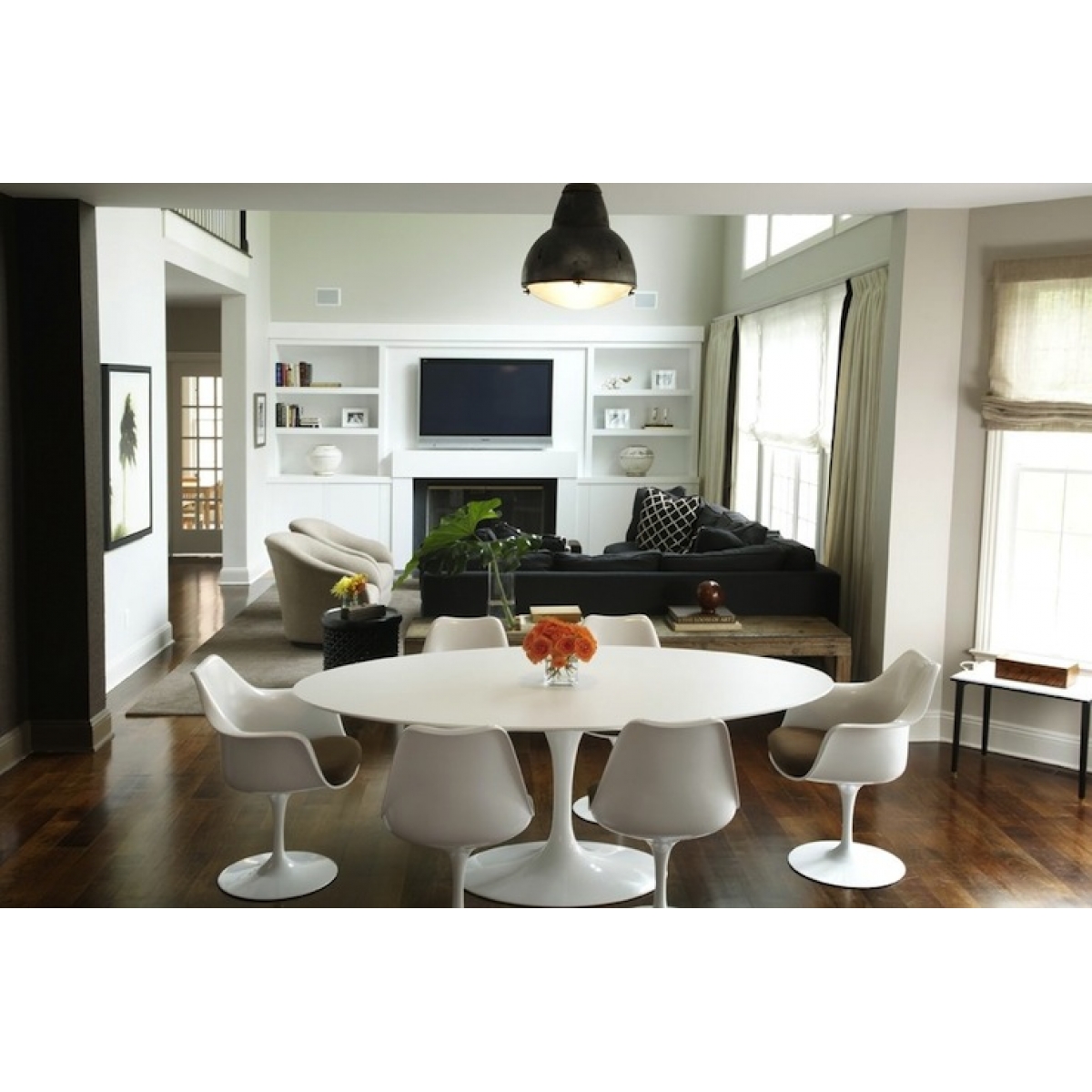 Mesa (padrão) Oval Saarinen Base Branca – Tampo Madeira/Branco